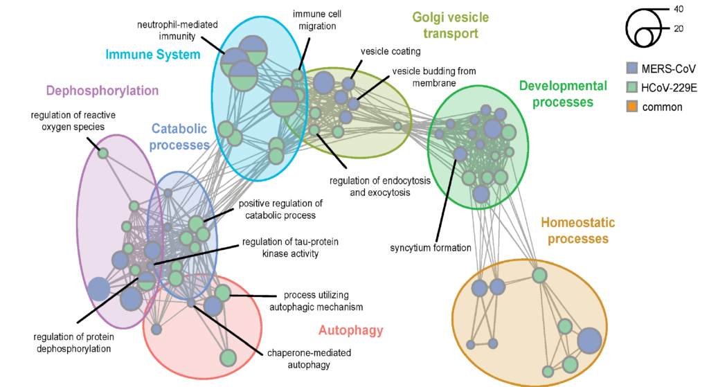 Als intrazelluläre Erreger, sind Coronaviren stark von Wirtsfaktoren abhängig. Mithilfe eines globalen genetischen Screens, haben wir Wirtsfaktoren identifiziert die für die Coronavirus Replikation absolut notwendig sind (Kratzel et al., 2021). Dieses Wissen hilft uns nun, neue antivirale Ziele zu identifizieren.  In aktuellen Projekten, versuchen wir den Coronavirus Replikationszyklus experimentell detailliert zu untersuchen um daraus mathematische Modelle zu generieren die genutzt werden können um Restriktionsfaktoren und damit neue therapeutische Ziele vorherzusagen (DFG Projekt:  CoV Mod, Fördern ID:462165342). Neben Wirts-Proteinen, haben wir einen Fokus auf den sogenannten nicht-kodierenden RNAs und untersuchen wie diese die Replikation und Restriktion von Coronaviren beeinflussen können.